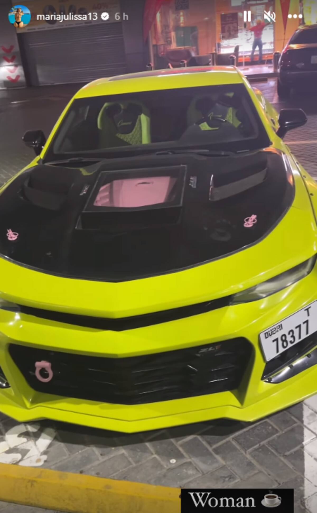 La joven se muestra en los clips llorando y explicando que acababa de chocar su vehículo, tipo Camaro, en la ciudad de Dubái, y el cual presumió en diversas imágenes en la red social.