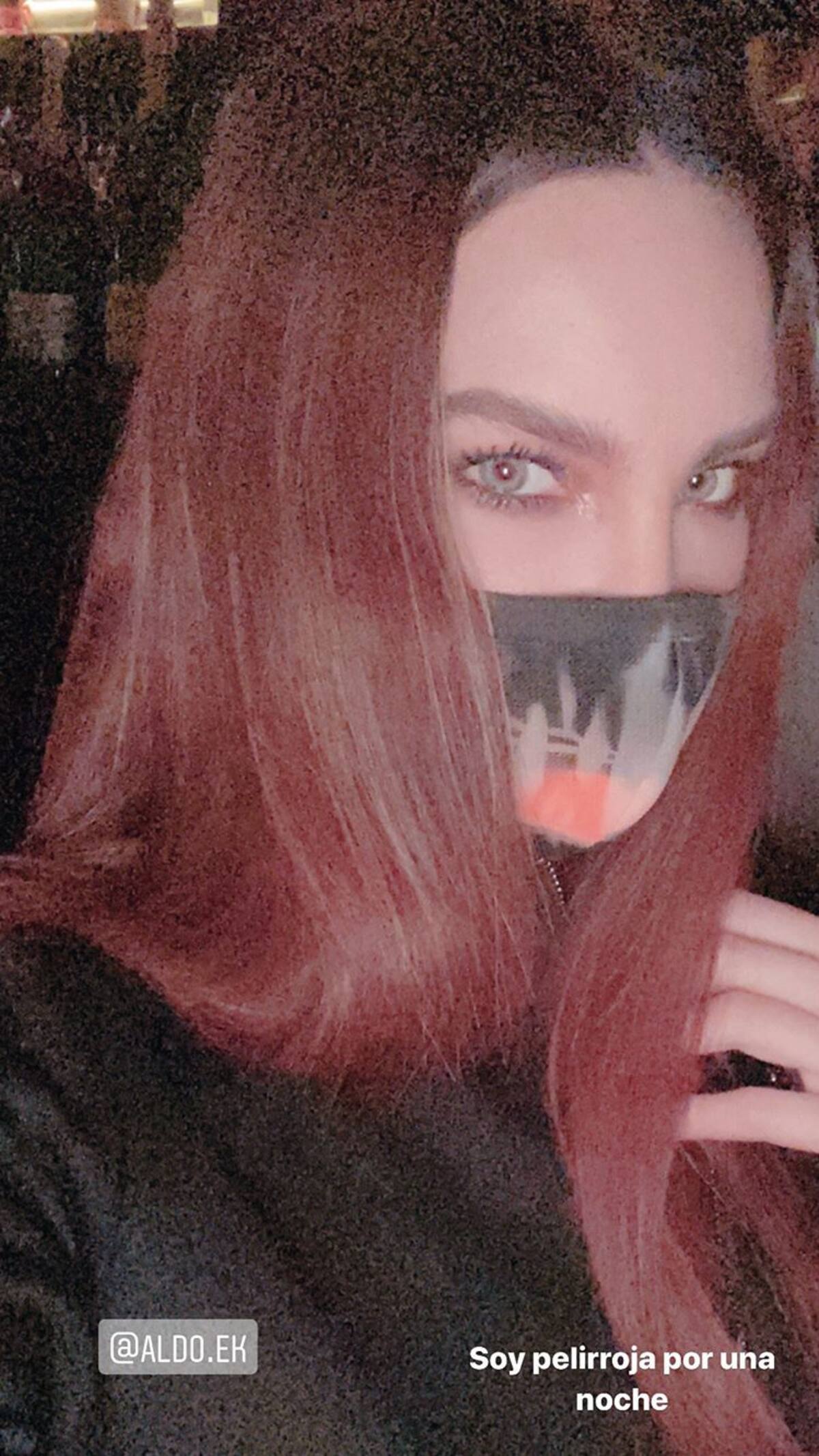 En sus historias de Instagram la cantante también subió imágenes de su temporal cambio de look, pues dejó de lado la rubia cabellera que la caracteriza, por una melena rojiza.