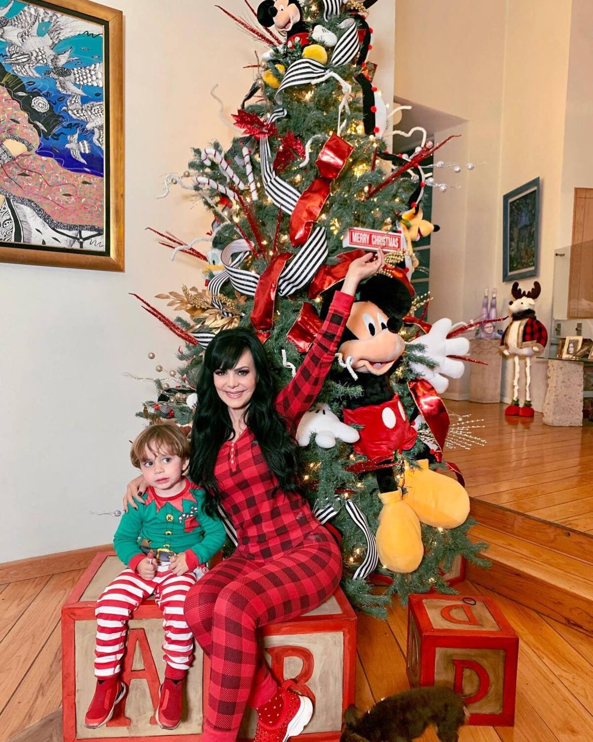 Maribel Guardia eligió una decoración inspirada en el ratoncito más famoso del mundo Mickey Mouse y al momento de poner el árbol su querido nieto la acompañó.