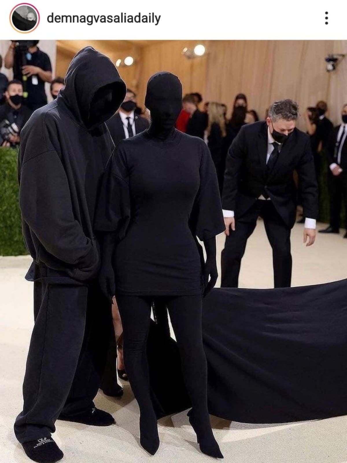 Kanye también apareció con el rostro cubierto en la presentación de su más reciente disco, “Donda”, de ahí que la prensa pensara que se trataba de él, pero no fue así, ya que el acompañante de la modelo era Demna Gvasalia, actual director creativo de Balenciaga, y el responsable de la vestimenta de Kim.
