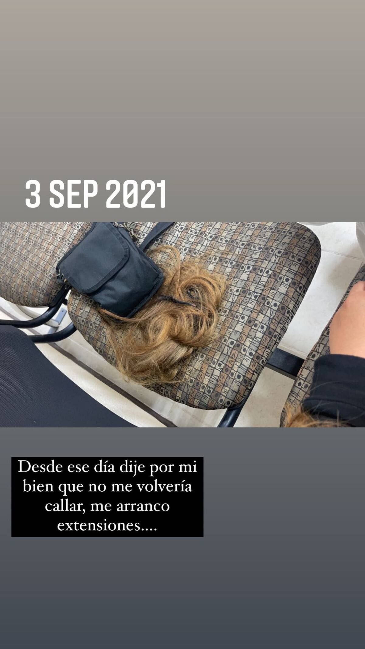 “Desde ese día dije que por mi bien no me volvería a callar, me arrancó las extensiones”, escribió junto a la fotografía.