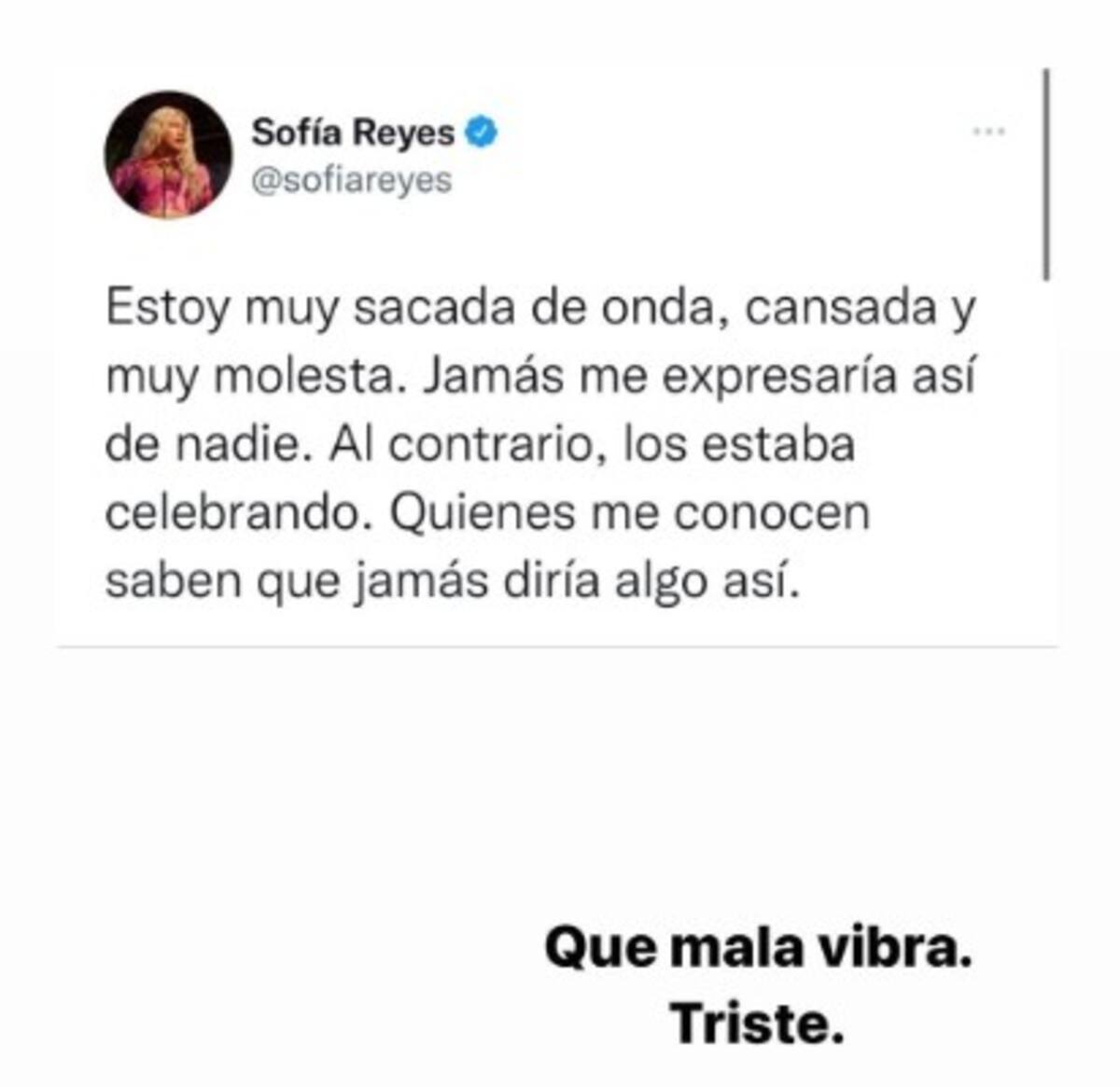 Tras esta polémica, Sofía Reyes utilizó sus historias de Instagram para explicar que jamás se expresaría despectivamente de sus compañeros.