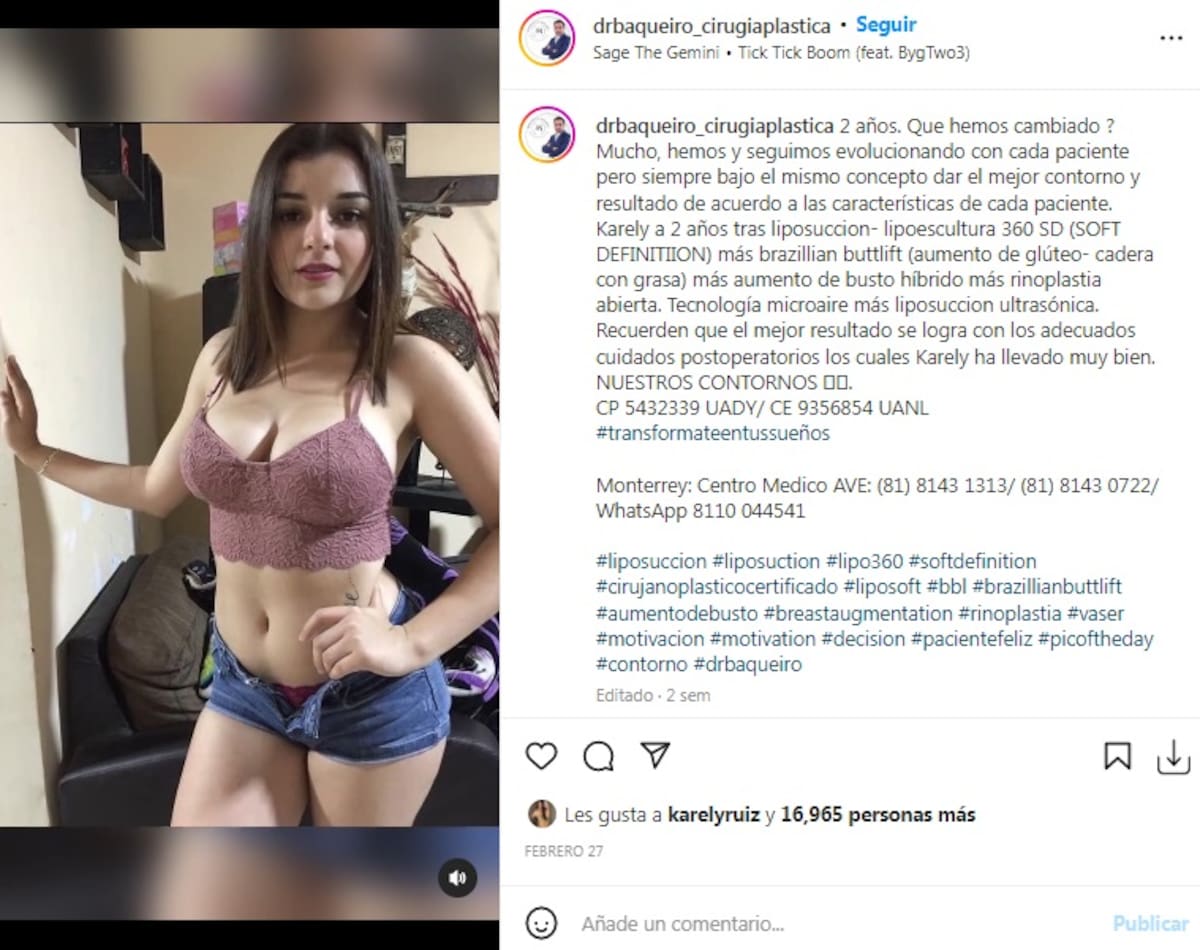 De acuerdo con lo que Aguilar Baqueiro explica en su cuenta, las cirugías de Karely se realizaron con "tecnología microaire más liposucción ultrasónica".