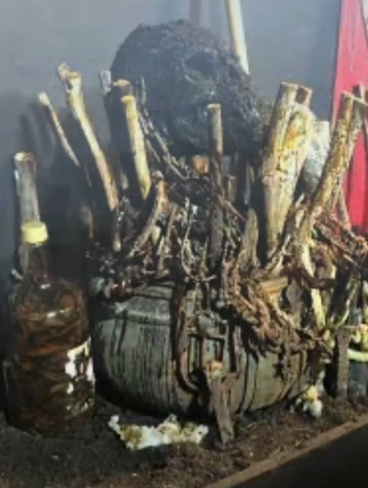 Esta persona que hizo el hallazgo y que prefirió mantenerse en el anonimato, asegura que encontró un caldero con un cráneo, restos de huesos, yerbas, veladoras y demás artículos macabros en el sótano de la casa de Andrés García.