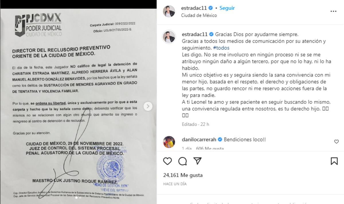 Te puede interesar: Así fue el momento en que Christian Estrada salió de prisión