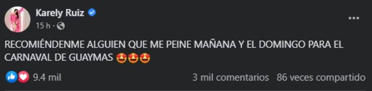 Por otro lado, la famosa preguntó a sus seguidores por medio de sus redes sociales que si conocían a una maquillista para que la ayudara a arreglarse para su presentación de este fin de semana.