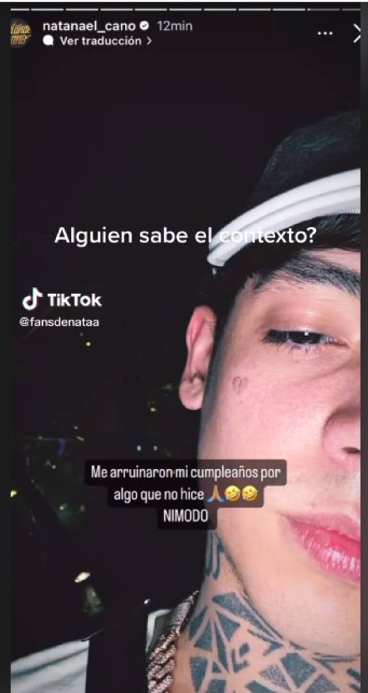 Me arruinaron mi cumpleaños por algo que ni hice. Nimodo", escribió Natanel Cano junto a unos emojis de risa y posteriormente, publicó otra foto en la que le pide disculpas a la gente de Cancún.