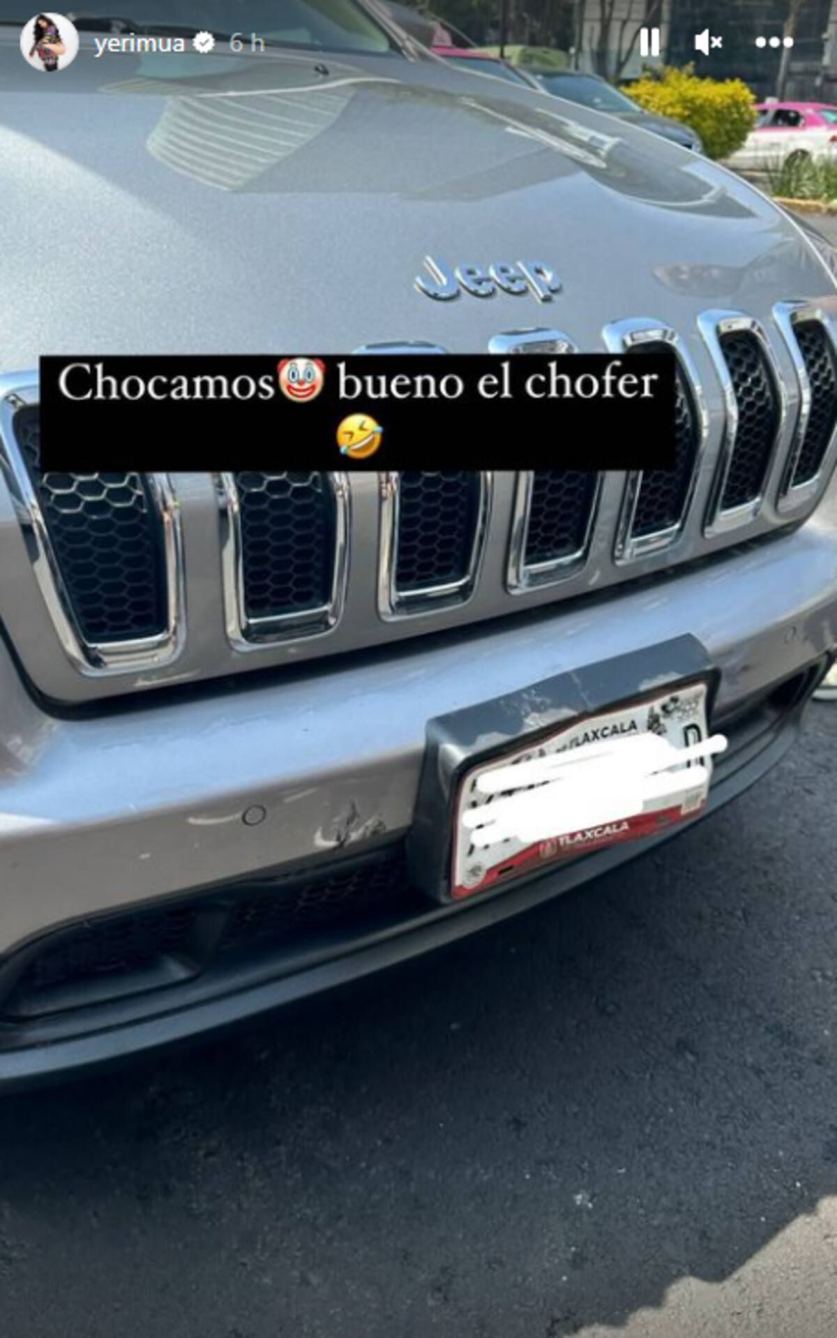 Chocamos, bueno, el chofer”, escribió Yeri Mua.