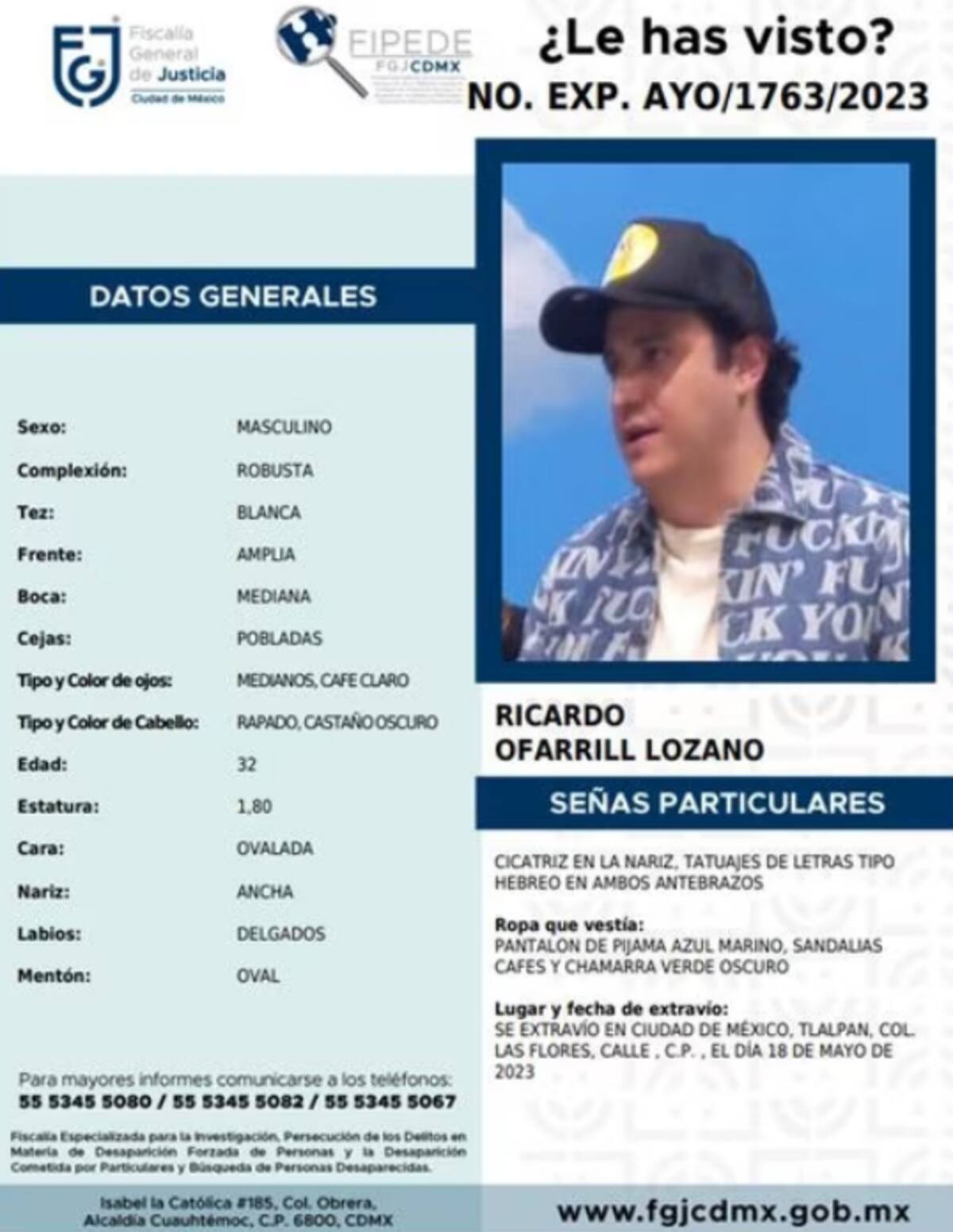 Según la ficha de búsqueda, el comediante fue visto por última vez el 18 de mayo de 2023 en la colonia Las Flores, ubicada en la alcaldía Tlalpan de la Ciudad de México. En el momento de su desaparición, vestía pantalón de pijama azul marino, sandalias cafés y una chamarra verde oscuro.