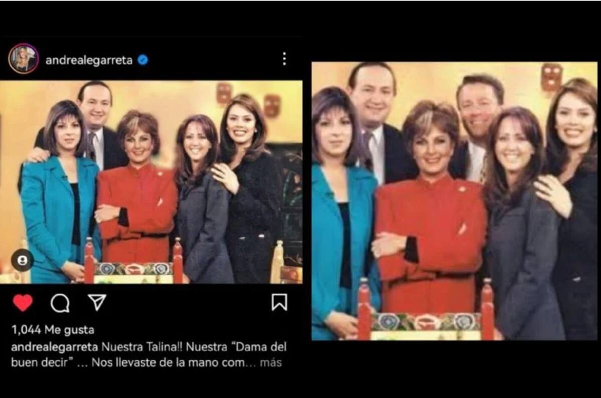 Ciudad de México.- Tras el fallecimiento de Talina Fernández, varios artistas del espectáculo mexicano usaron sus redes sociales para despedirse, entre ellos Andrea Legarreta, quien desató una controversia al compartir una foto junto en donde aparece junto a la propia actriz y otras personalidades.