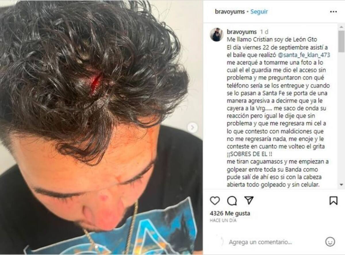 El rapero Ángel Jair Quezada Jasso, mejor conocido como Santa Fe Klan, se encuentra envuelto en un escándalo tras ser señalado de haber mandado a golpear y robar a uno de sus seguidores en un evento que se realizó el pasado viernes 22 de septiembre en León, Guanajuato.