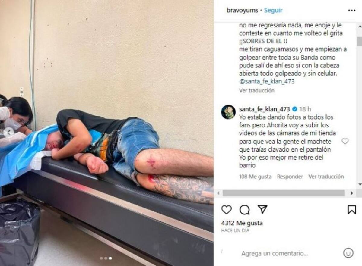 Santa Fe Klan respondió a la denuncia en la misma publicación, argumentando que actuó así por su seguridad, pues aseguró que el joven llevaba un machete entre sus prendas. El rapero dijo tener pruebas de su versión y prometió subir un video para demostrarlo.