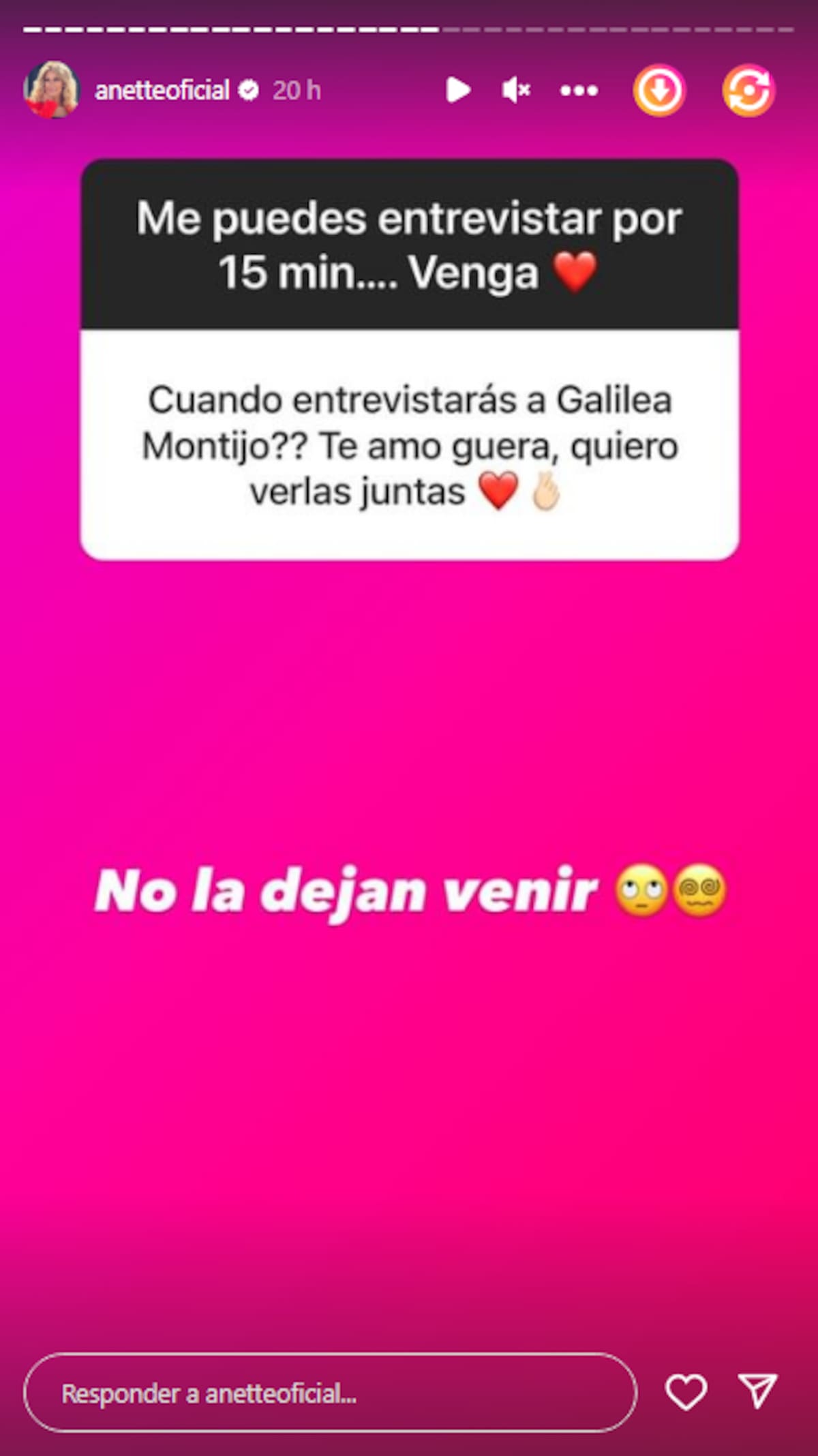 "No la dejan venir", escribió Anette.