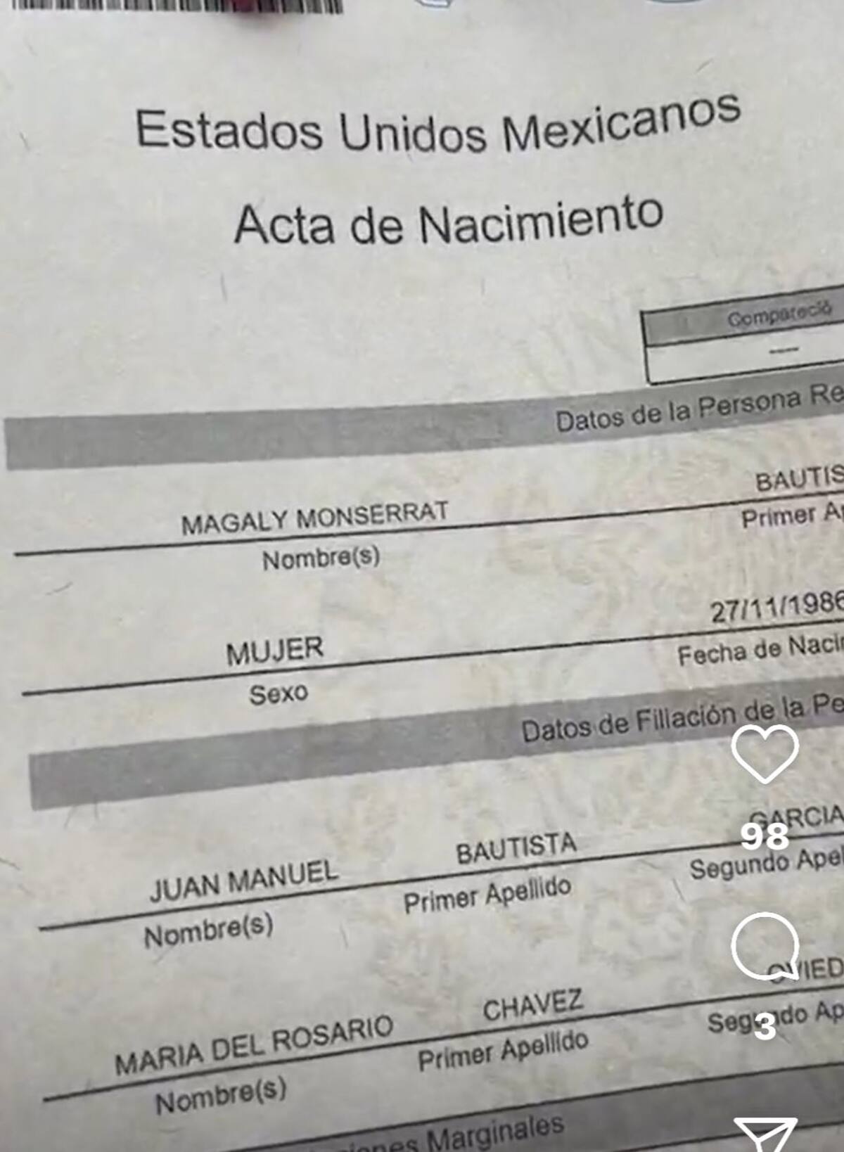 En un acto de hartazgo y como respuesta a las acusaciones, Magaly Chávez decidió abordar directamente el origen de la controversia. La modelo se dirigió al registro civil para obtener una copia de su acta de nacimiento, documento que según ella refuta las afirmaciones de Adame.