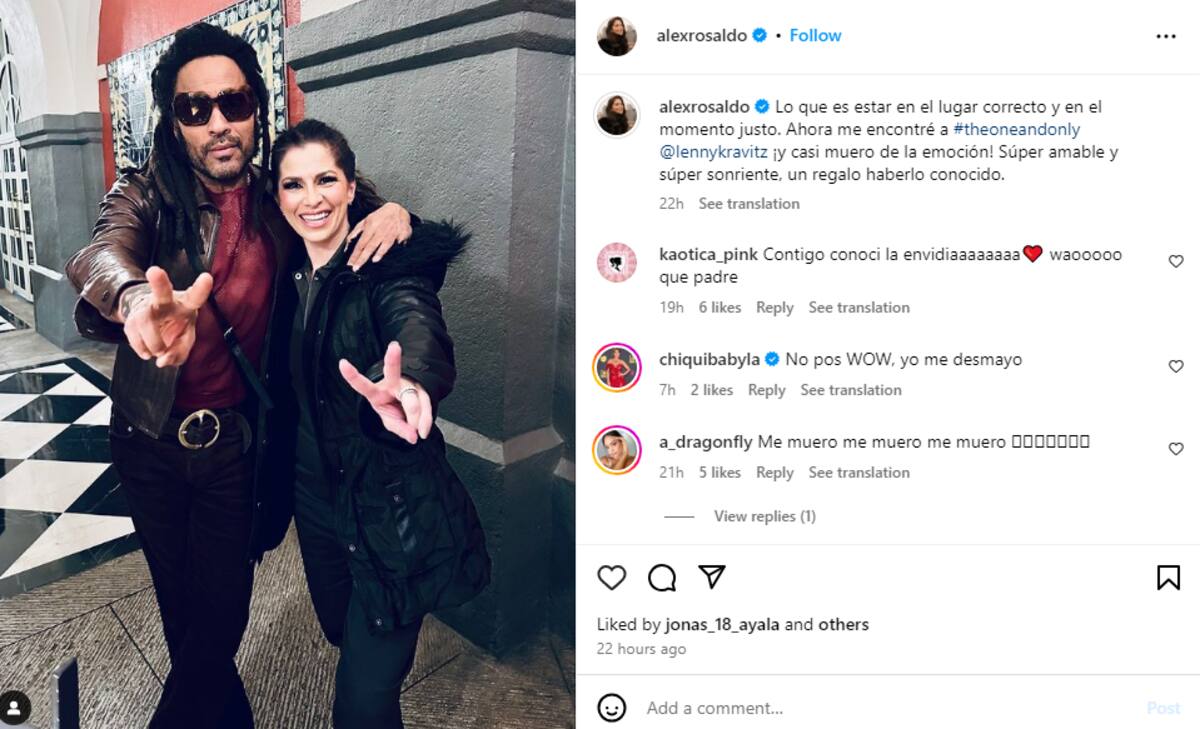 Además de promover su nuevo álbum, Kravitz ha sorprendido a sus seguidores mexicanos al compartir una foto en sus historias de Instagram junto a la cantante mexicana Alessandra Rosaldo, conocida por ser parte del grupo Sentidos Opuestos. En la imagen, ambos aparecen sonrientes haciendo la señal de la victoria, tomada durante una conferencia de prensa en el Hotel Four Seasons de la Ciudad de México.
