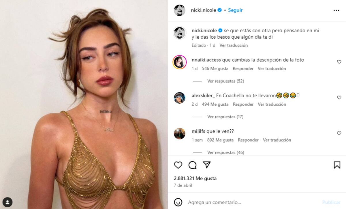 Tras la viralización de las imágenes de Peso Pluma con Gabrielle en Coachella, Nicki Nicole compartió un enigmático mensaje en sus redes sociales, que muchos interpretaron como una indirecta hacia su ex pareja. La publicación, realizada en su cuenta oficial de