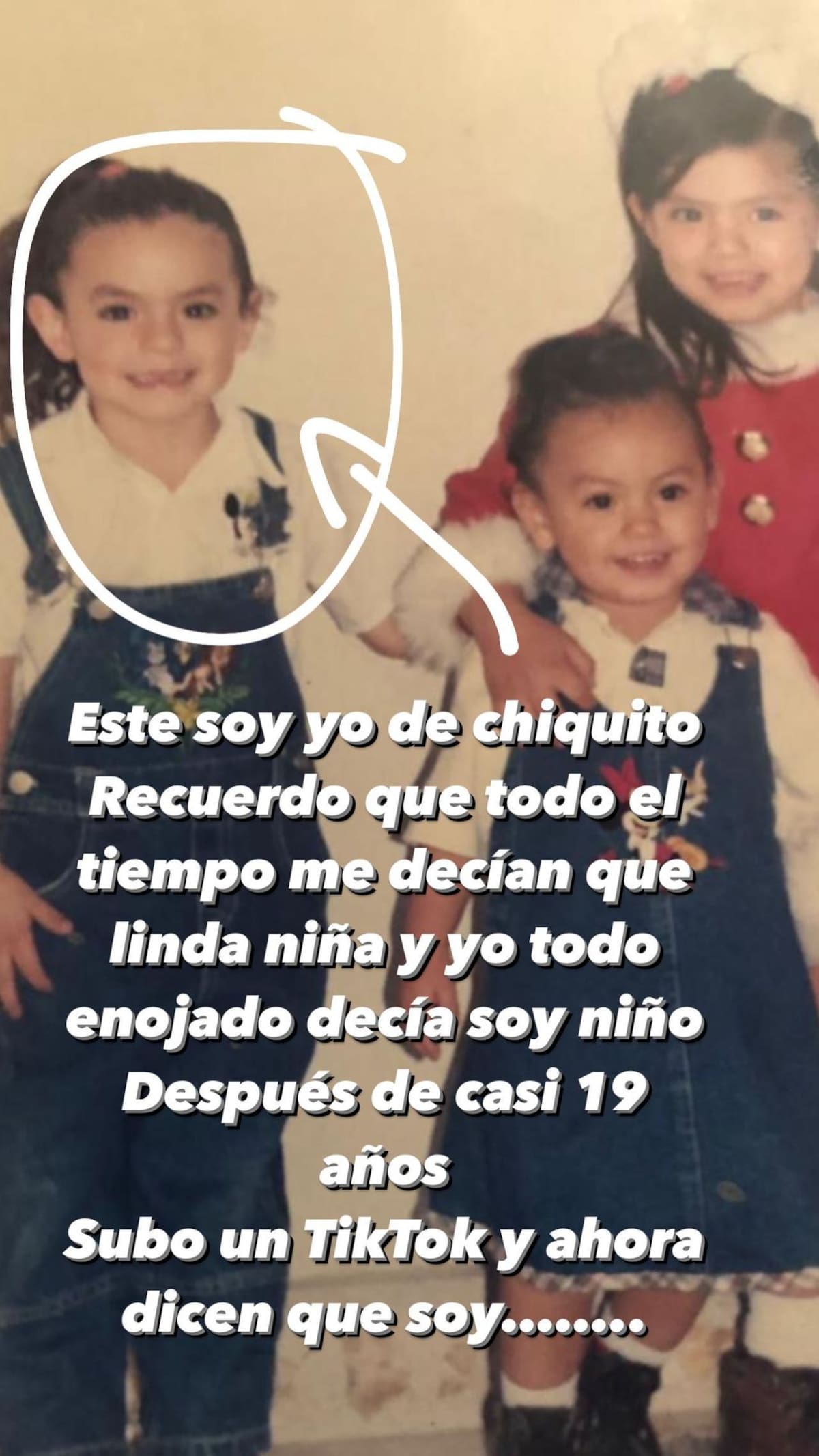 Este soy yo de chiquito. Recuerdo que siempre me decían: ‘¡qué linda niña!’. Y yo todo enojado decía: ‘Soy niño’. Después de casi 19 años subo un TikTok y ahora dicen que soy…” escribió Adriano.