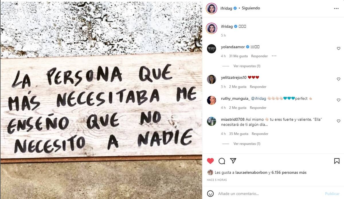 A pesar de que la cantante no se pronunciado al respecto, Frida Sofía recurrió a sus redes sociales para mandar un mensaje que parecería que es para su madre.