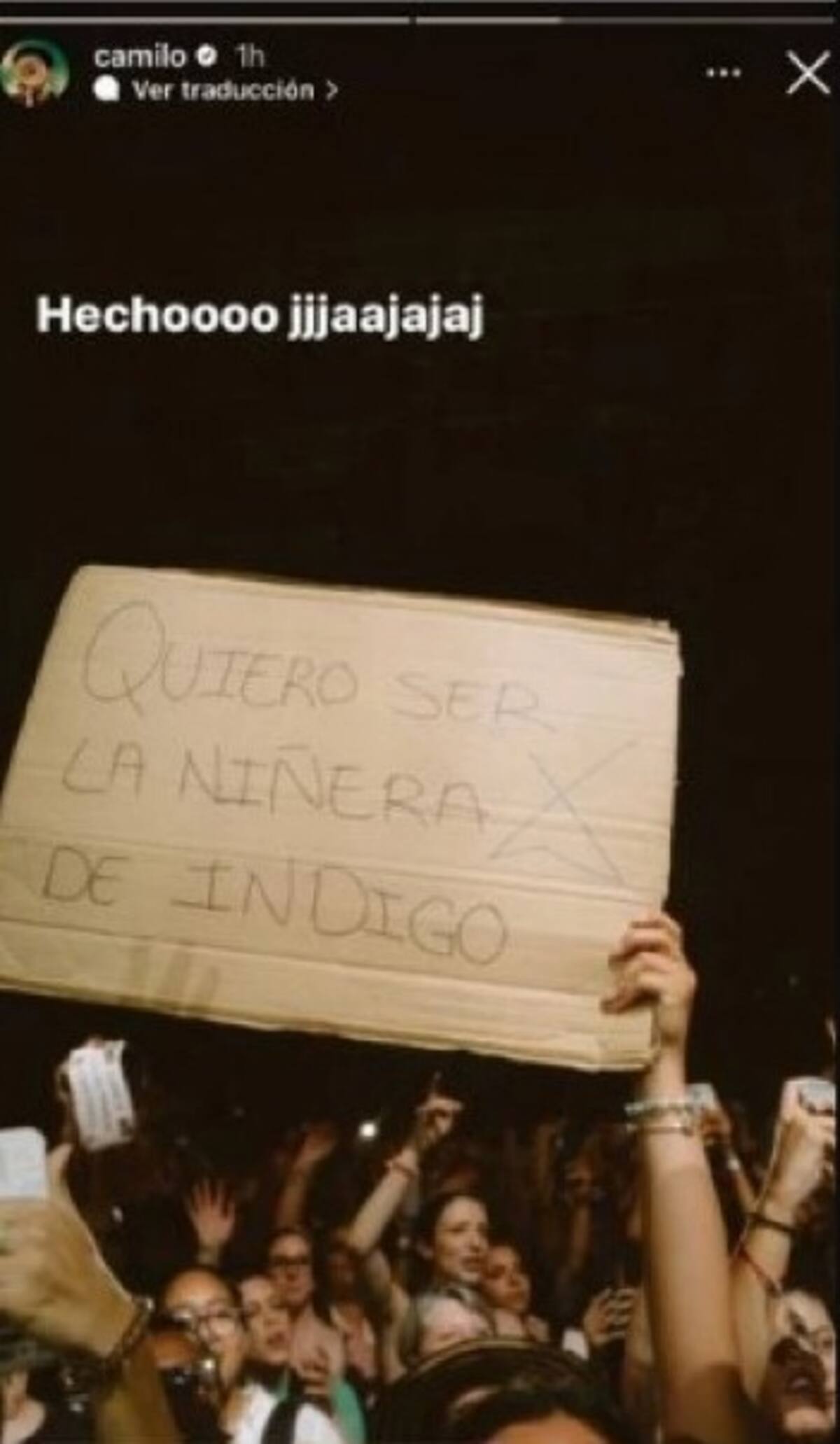El intérprete de “Ropa Cara” compartió a través de una de sus historias de instagram a una fan en uno de sus conciertos, con un cartel que decía “Quiero ser la niñera de Índigo”, a lo que el compositor escribió “Hecho jjjaajajaj”.