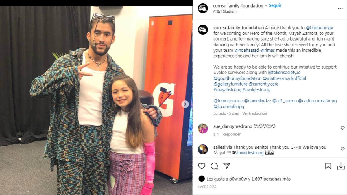 Muchas gracias a Bad Bunny por darle la bienvenida a tu concierto a nuestra Heroína del Mes, Mayah Zamora, y por asegurarse de que ella tuviera una noche hermosa y divertida bailando con su familia. Todo el amor que recibió de ti y tu equipo, hizo de esta una experiencia increíble que ella y su familia atesoran”