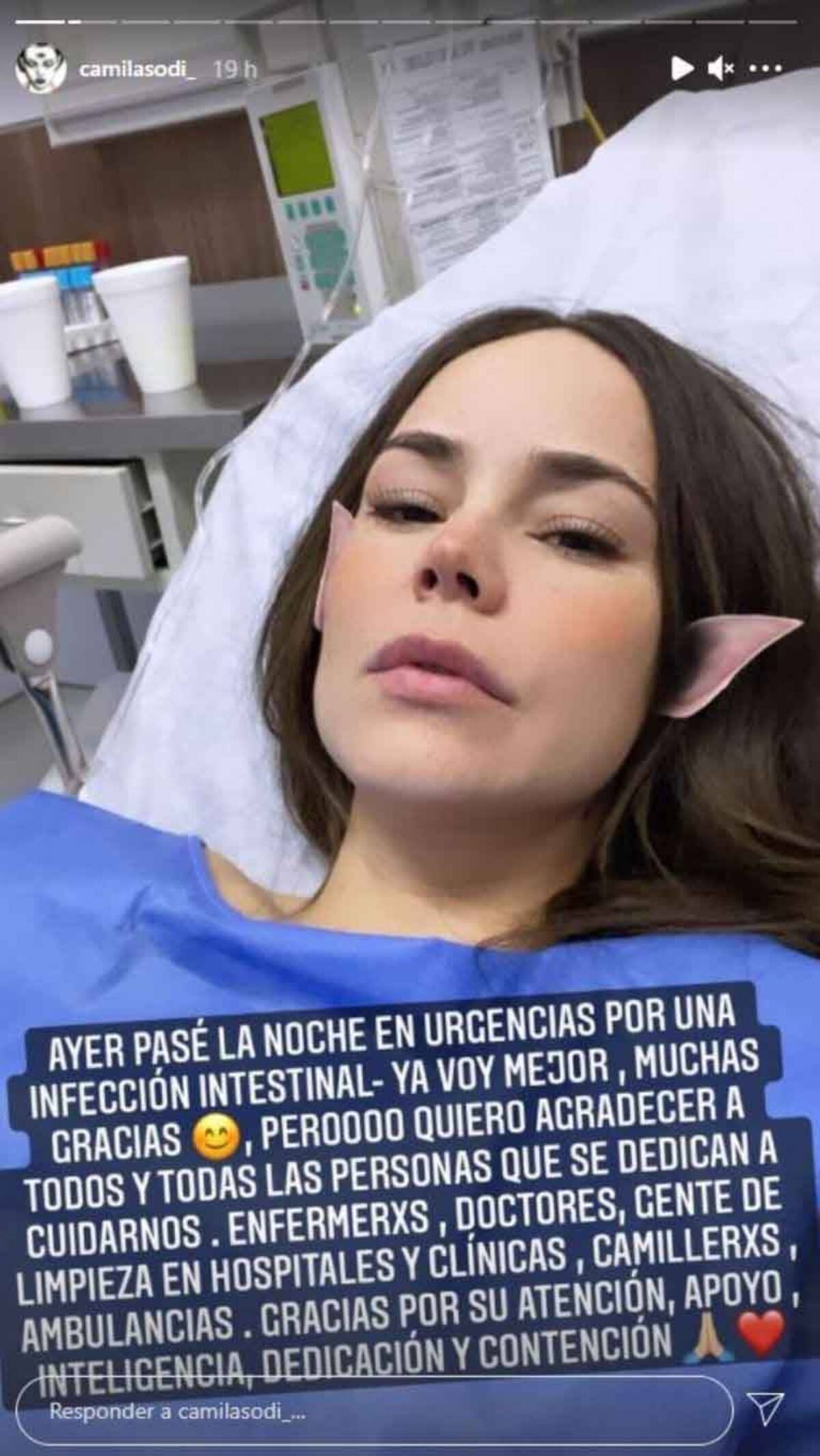 La actriz, de 34 años, explicó por medio de sus historias de dicha red social que había pasado la noche del martes en el hospital, tras una infección intestinal.
