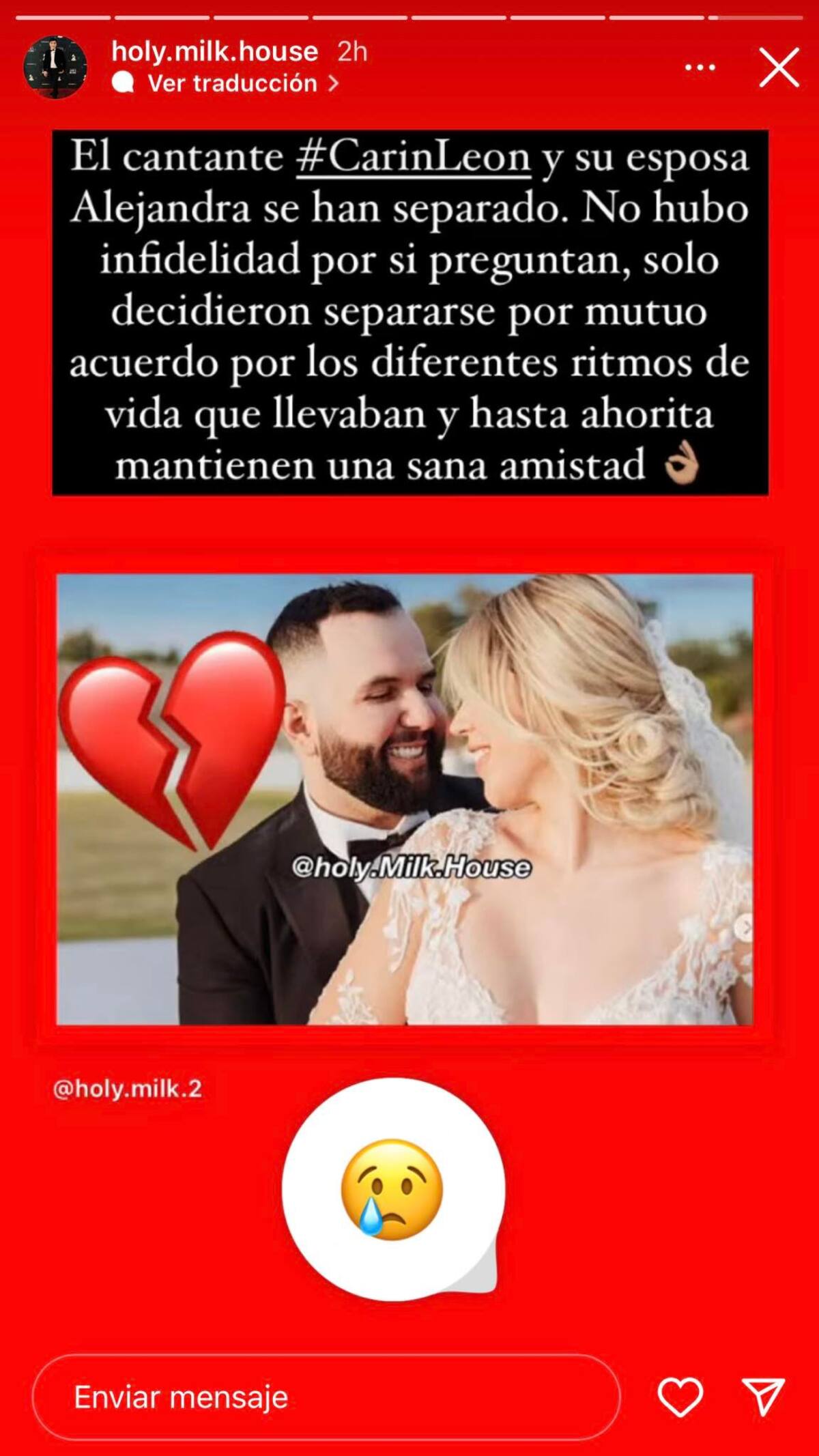 Otro de los detalles que alimentan esta teoría, es que Alejandra Esquer ya no sigue a Carín León a través de su cuenta oficial de Instagram, por lo que todo apunta a que pudiera ser verdad.