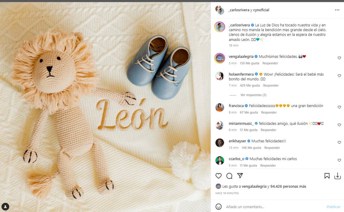 La Luz de Dios ha tocado nuestra vida y en camino nos manda la bendición mas grande desde el cielo. Llenos de ilusión y alegría estamos en la espera de nuestro amado León”, escribieron en una publicación en Instagram.