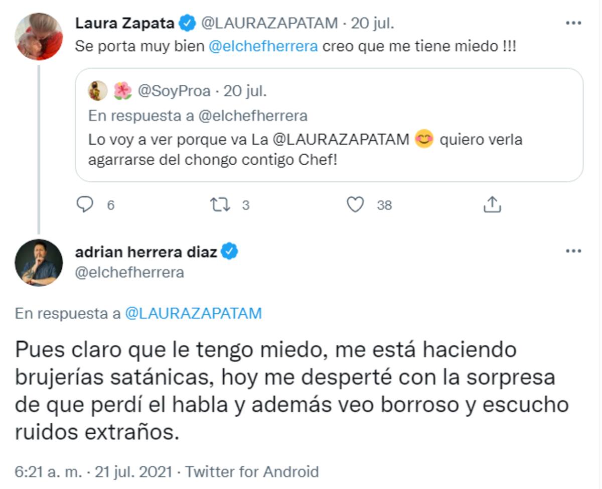 Herrera respondió por medio de su cuenta de Twitter a una internauta que le decía estar emocionada por ver cómo Zapata y él se peleaban.