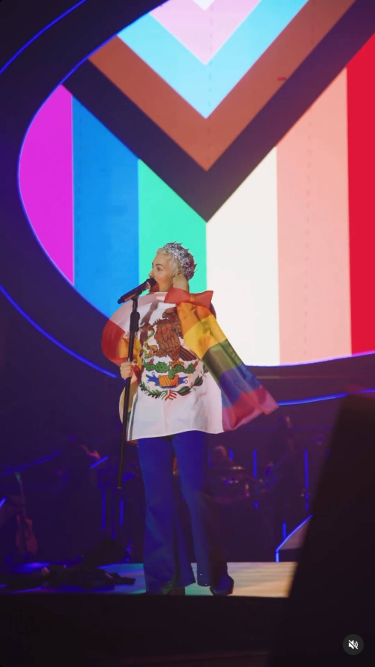 Mientras se presentaba en uno de sus shows en territorio estadounidense, Chávez recibió la bandera mexicana, pero con los colores característicos del arcoíris que simbolizan a la comunidad LGBT+, en lugar de los colores tradicionales de la bandera mexicana.
