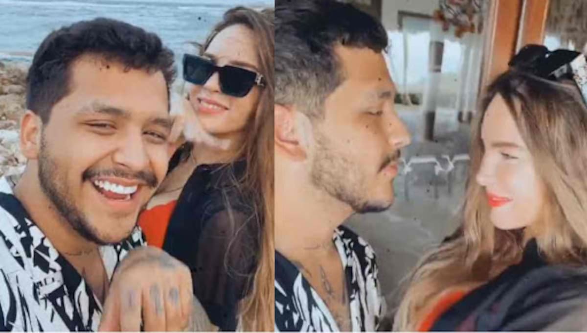 Casi al finalizar la entrevista, Christian Nodal confesó frente a Belinda (que estaba con él en un hotel y se asomó durante la videollamada) que se va a casar con ella.