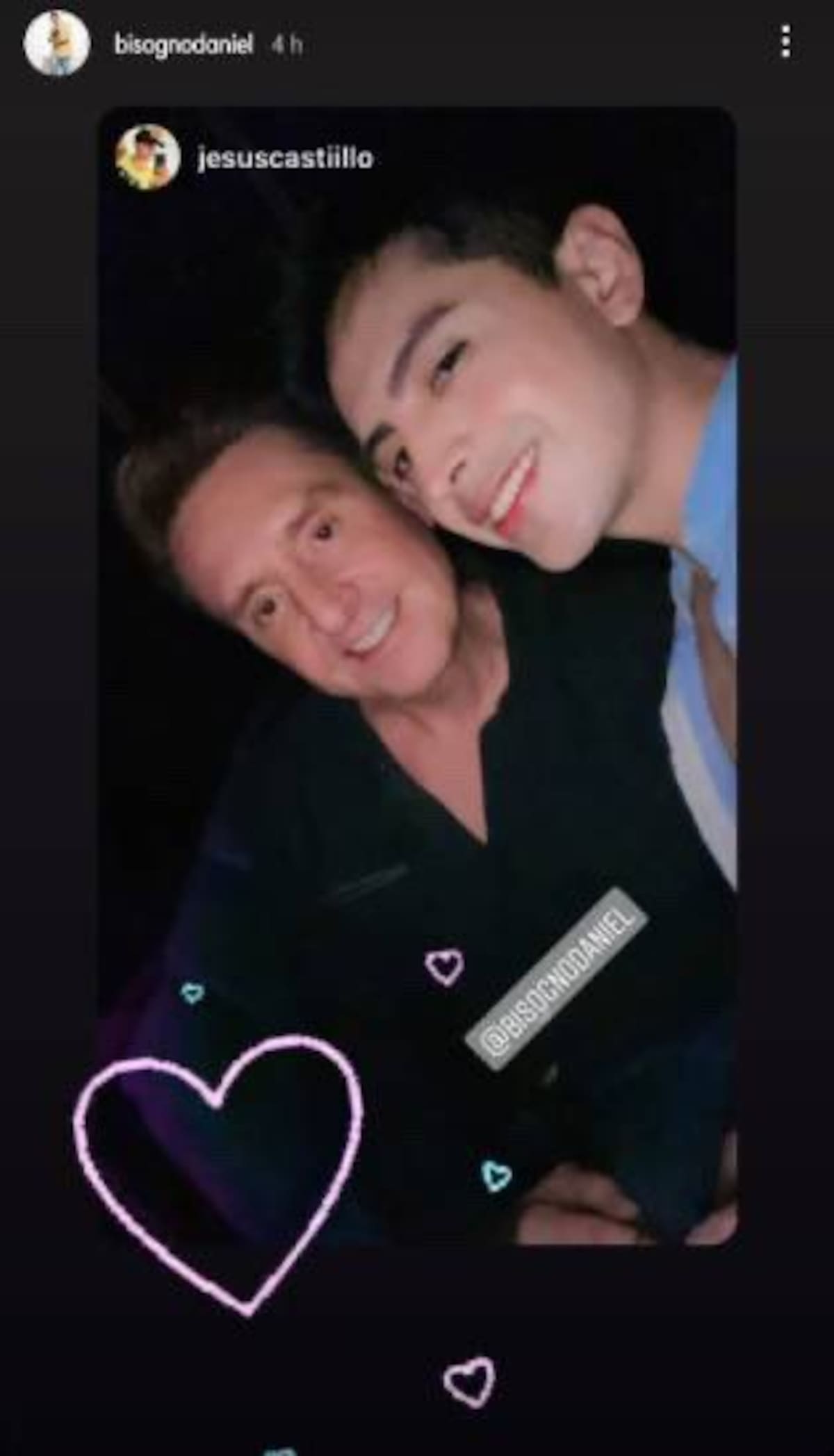 Y es que en la imagen aparece Daniel Bisogno, de 48 años, posando con Jesús Castillo, sin embargo, la foto fue editada con un corazón, lo que generó una ola de comentarios en redes sociales.