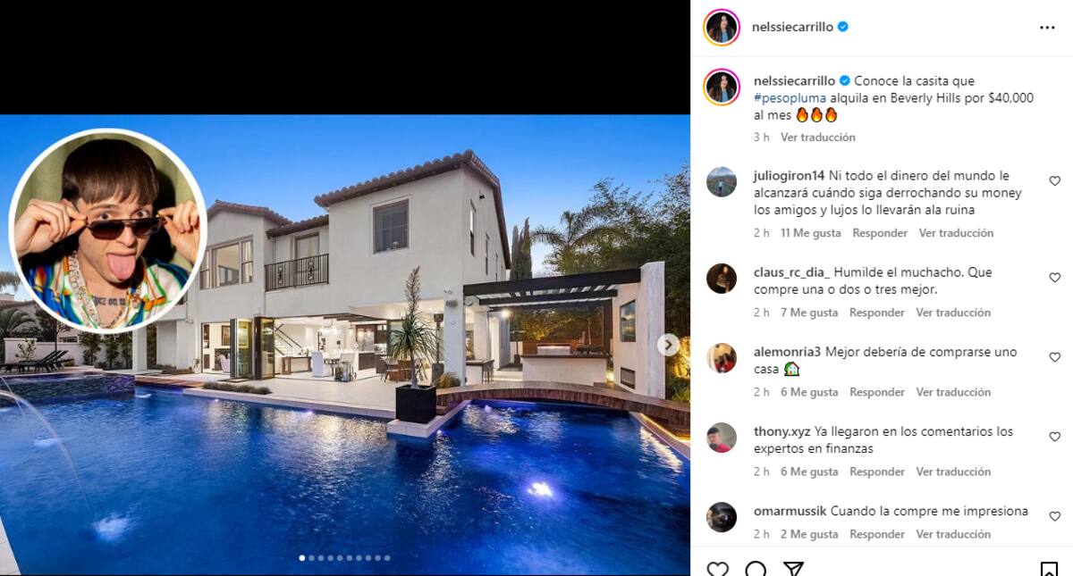 "Conoce la casita que Peso Pluma alquila en Beverly Hills por $40,000 al mes", escribió Nessie Carrillo en sus redes sociales.