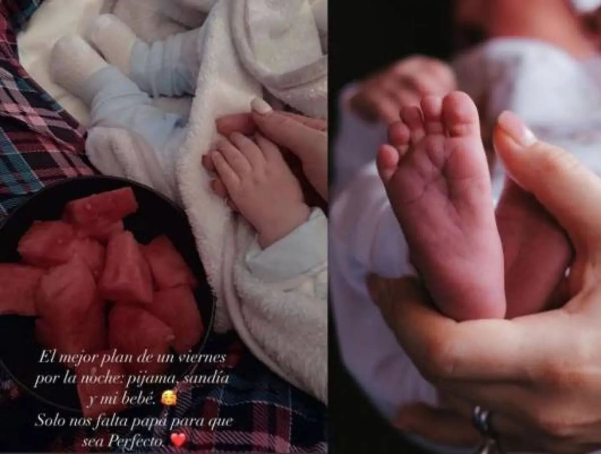 “El mejor plan de un viernes por la noche: pijama, sandía y mi bebé. Sólo nos falta papá para que sea perfecto”, escribió Rodríguez junto a la imagen, que rápidamente se viralizó entre los fans de la pareja.