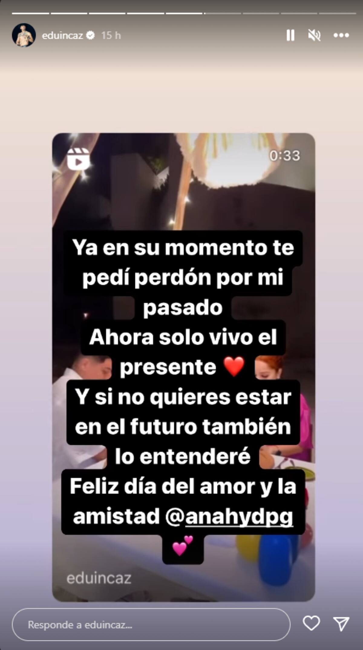 En su momento te pedí perdón por mi pasado, ahora vivo el presente y si no quieres estar en el futuro también lo entenderé. Feliz día", escribió Eduin Caz.