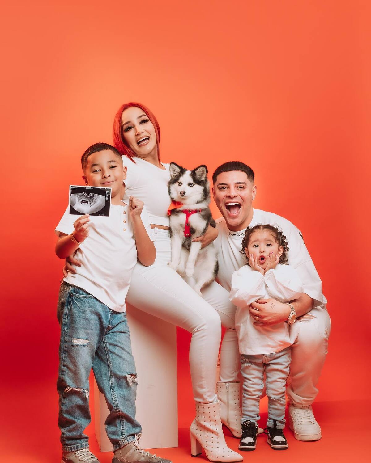 El vocalista de Grupo Firme compartió en su cuenta de Instagram una serie de fotografías con la que dio a conocer la noticia, en las imágenes se miraba a Eduin, sus hijos y hasta su mascota posando junto a su esposa, quien sostenía un ultrasonido.