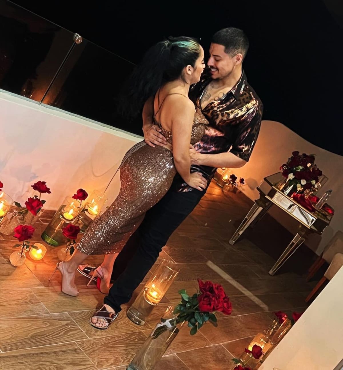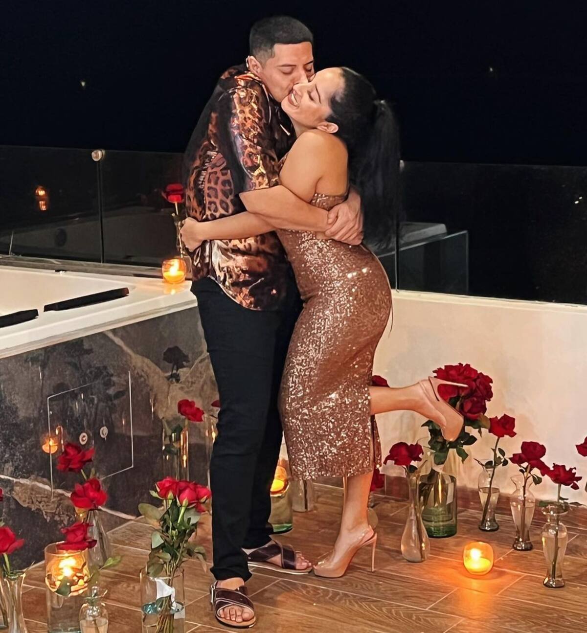 A través de su cuenta de Instagram, la pareja compartió fotos y videos del bonito momento en donde se pudo ver a Eduin y Anahy en un balcón rodeado de velas y rosas, y claro, no podía faltar la pirotecnia.