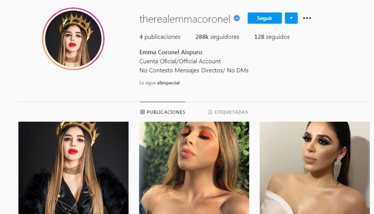 Después de las dudas que surgían en torno a esa cuenta, de que si era o no Emma Coronel, podemos estar seguros de que la pareja de “El Chapo” es quien la utiliza, de hecho, ha realizado algunas transmisiones en vivo para platicar con sus fans.