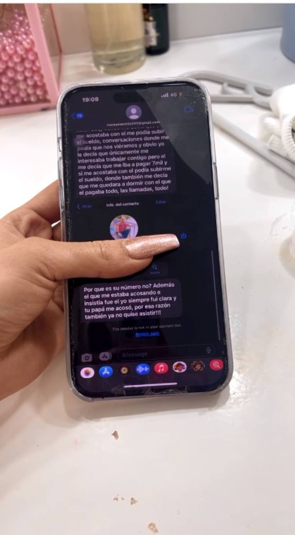 El que me estaba acosando e insistía fue él. Yo siempre fue clara y tu papá me acosó, por esa razón ya no quise asistir”, le dijo la chica a Yeri Mua por medio de un mensaje de texto.
