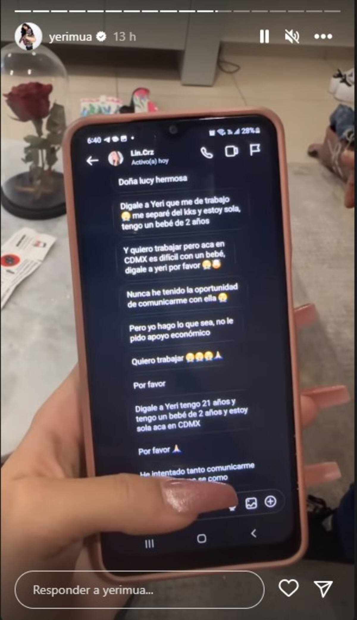 Yeri Mua comunicó que la muchacha vivía a dos horas de su casa, motivo por el que pensó que ya no regresaría, pero decidió darle una oportunidad. No obstante, la joven le mandó un mensaje para explicarle el motivo por el que decidió no regresar a trabajar.