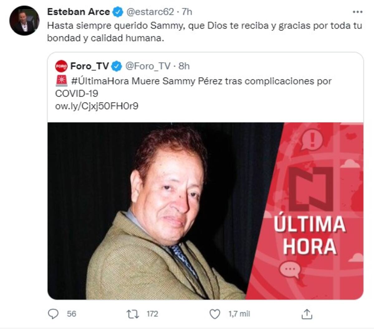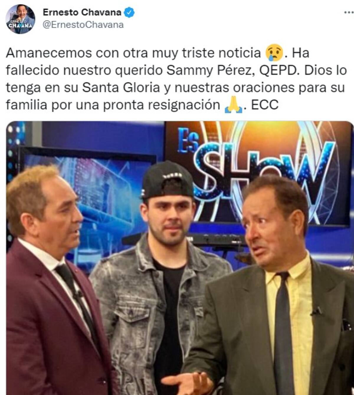 “Amanecemos con otra muy triste noticia. Ha fallecido nuestro querido Sammy Pérez, QEPD. Dios lo tenga en su Santa Gloria y nuestras oraciones para su familia por una pronta resignación”, escribió Ernesto Chavana en su cuenta de Twitter.