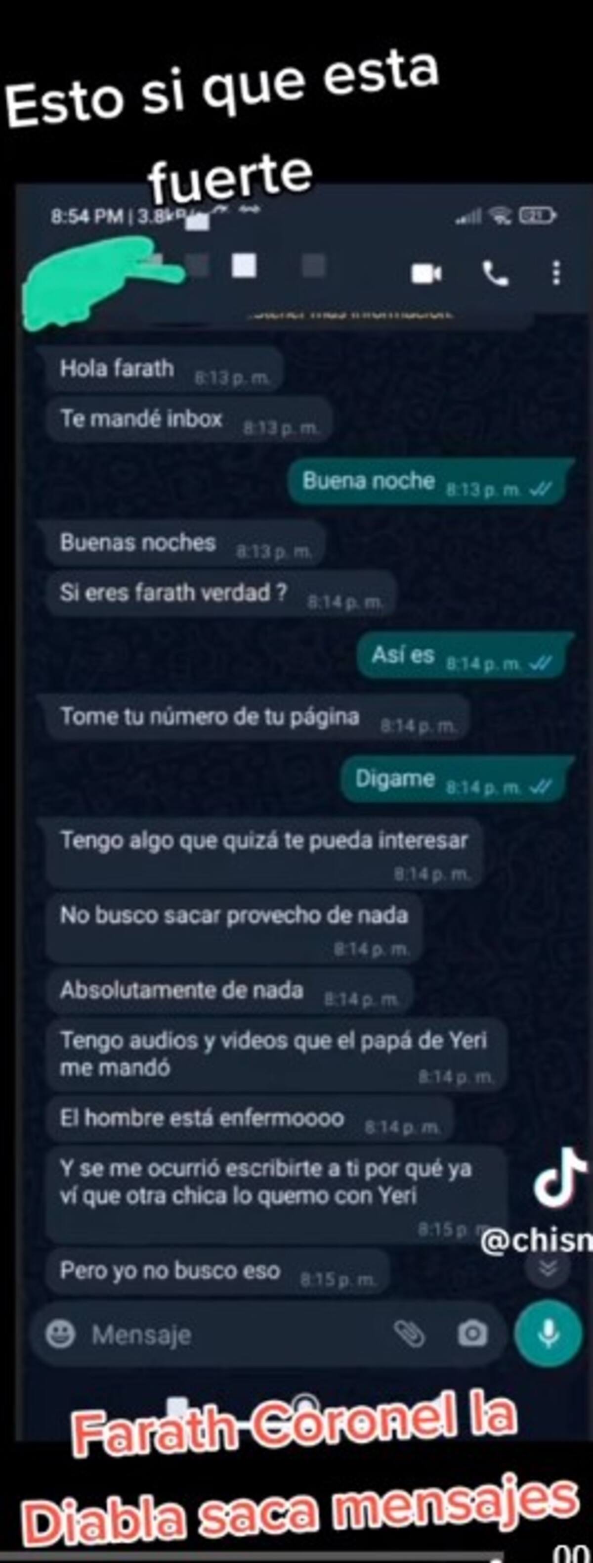Los audios compartidos por el vidente Farath Coronel en su cuenta de Facebook muestran aparentemente al papá de la creadora de contenido diciéndole cosas subidas de tono a la chica, de quien se desconoce su nombre.