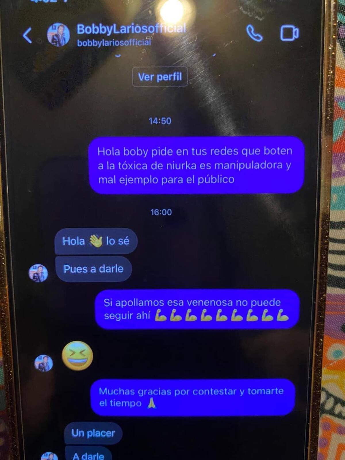 En esta conversación que se llevó a cabo por la red social Instagram, se puede leer como los ‘pajaritos’, el grupo de seguidores de Mane, pedían el apoyo de Bobby Larios para que pidiera al público votar para expulsar a la cubana del reality.