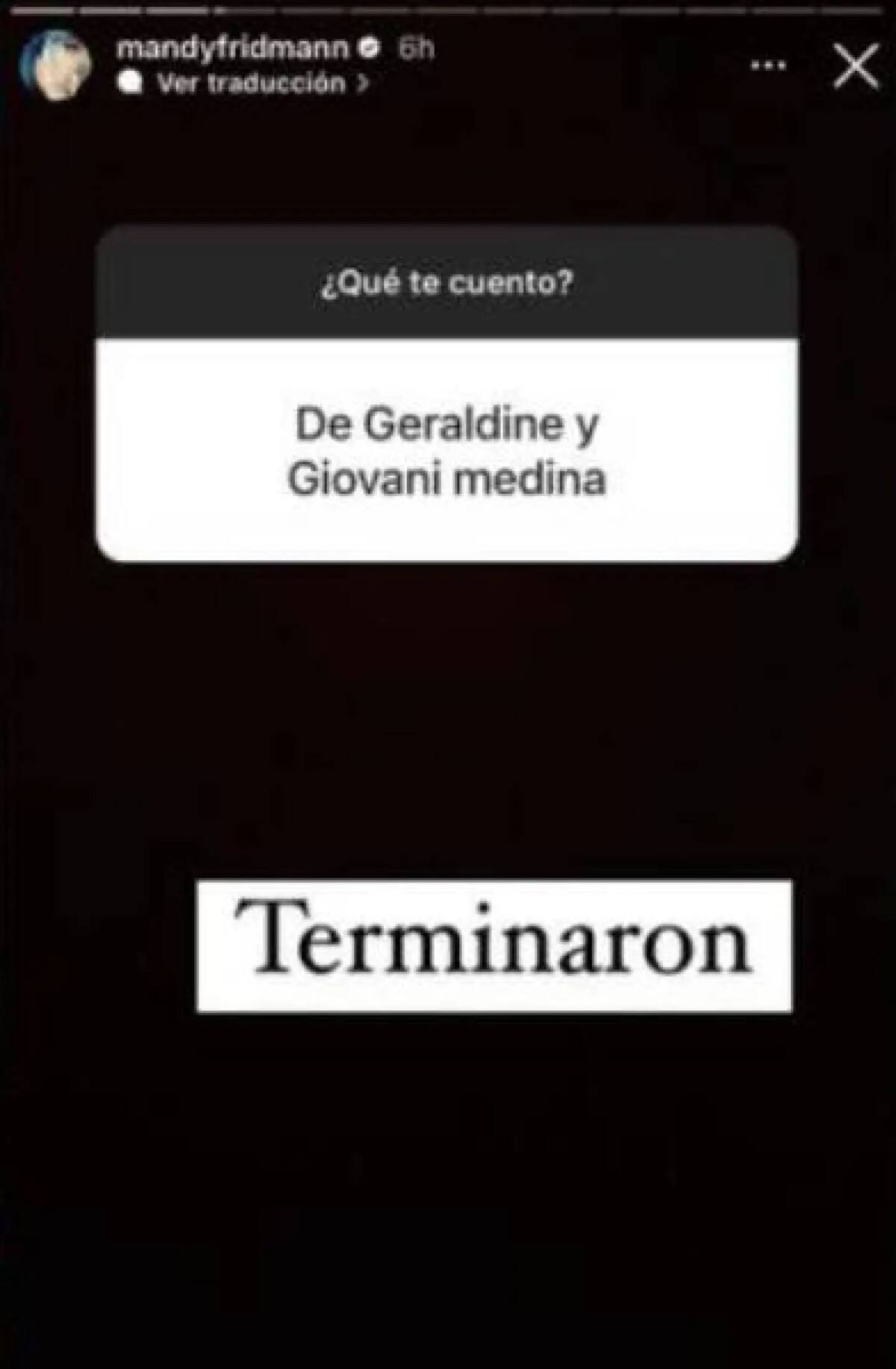 Después de haber sido vistos juntos en varios lugares, como Disneyland y un concierto de Luis Miguel, la actriz Geraldine Bazán y el empresario Giovanni Medina habrían puesto fin a su relación amorosa.