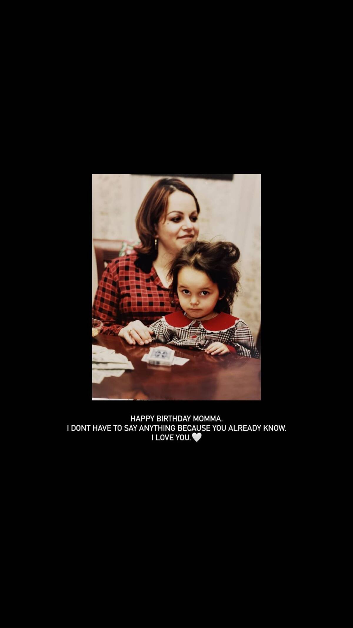 “Feliz 53 cumpleaños mamá. Te amo con todo mi corazón. Los niños y yo soplaremos algunas velas para ti aquí abajo”, escribió la segunda hija de la cantante con una foto donde aparece muy feliz comiendo arriba de una mesa.
