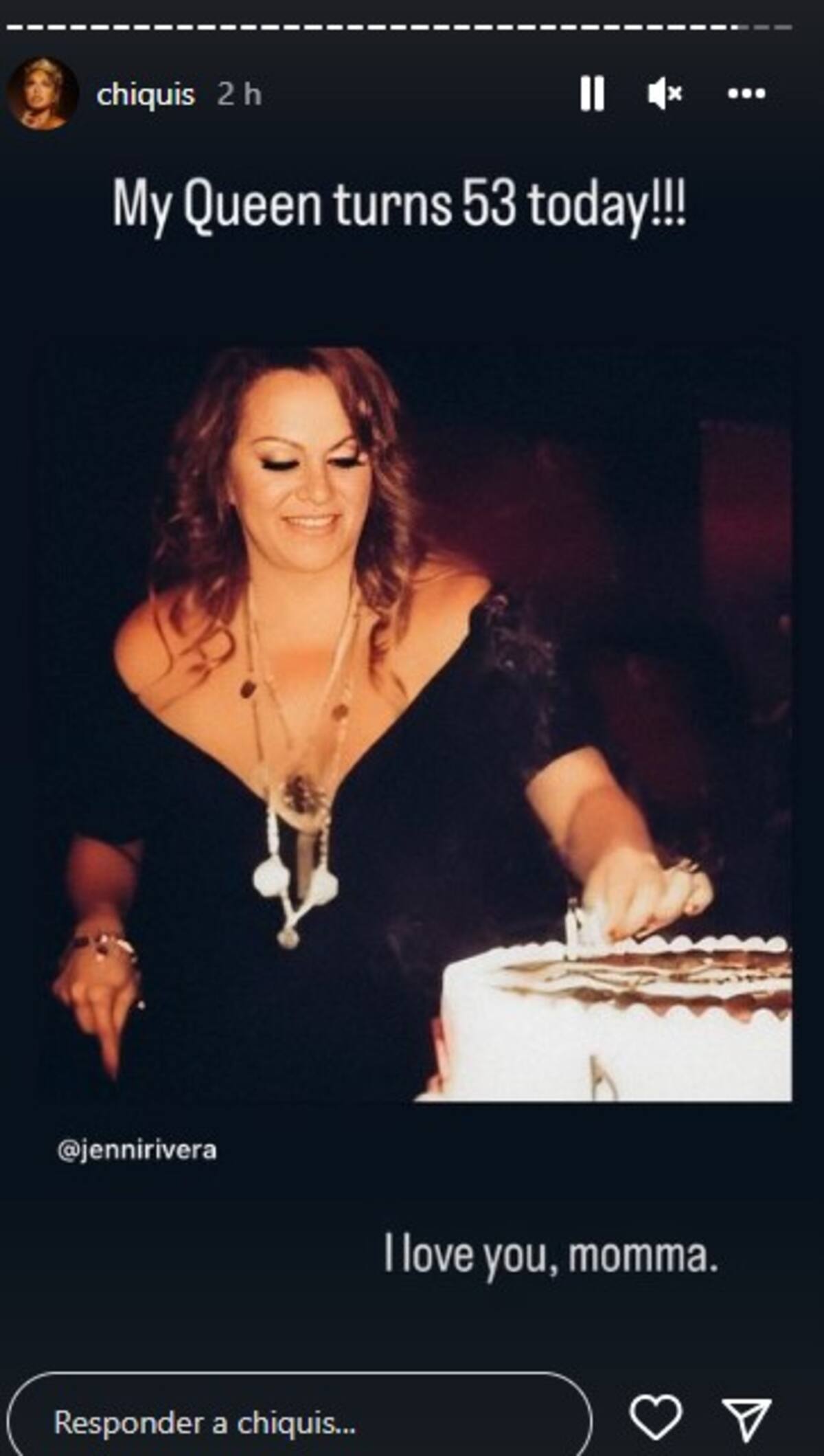 La hija mayor de Jenni Rivera que hace poco estaba de manteles largos por sus 37 años compartió en sus historias de Instagram una fotografía donde su madre aparece junto a un pastel de cumpleaños.