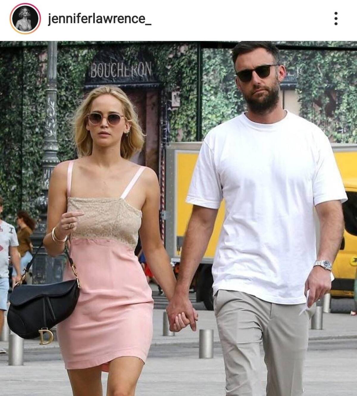 El esposo de Lawrence es el director de una importante galería de arte en Manhattan, y su relación se hizo pública en 2018, comprometiéndose en febrero de 2019, en una boda llena de invitados famosos, como Adele o Emma Stone.