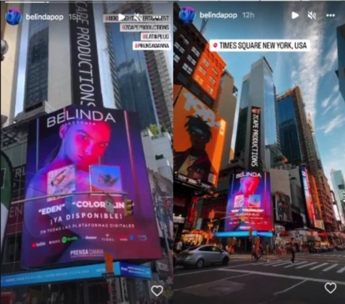La primera cantante reconocida en México, en publicitarse en este lugar, fue Belinda, que hizo promoción de los sencillos musicales de “Bienvenidos a Edén”, de la mano de Spotify, apareciendo en una modesta pantalla.