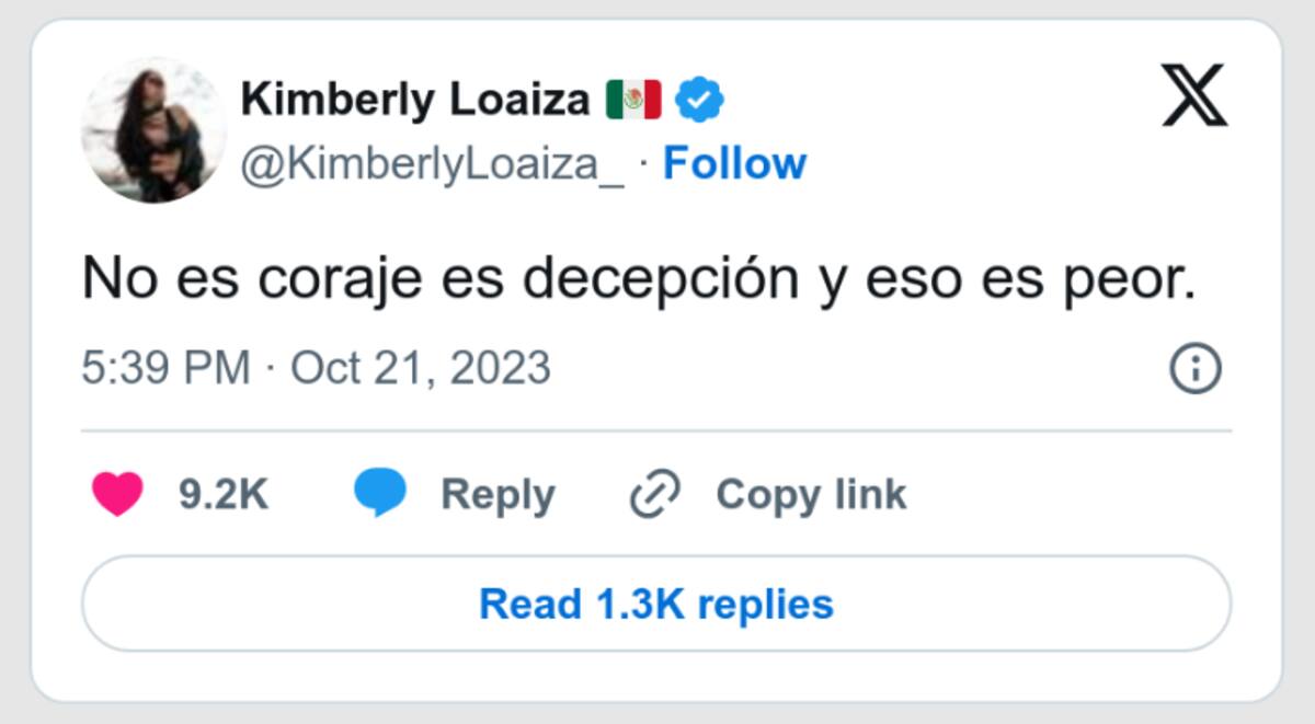 Kimberly Loaiza, madre de dos hijos que comparte con Juan de Dios Pantoja, reaccionó públicamente ante la impactante revelación. La cantante expresó su desilusión a través de un mensaje en su cuenta de Twitter.