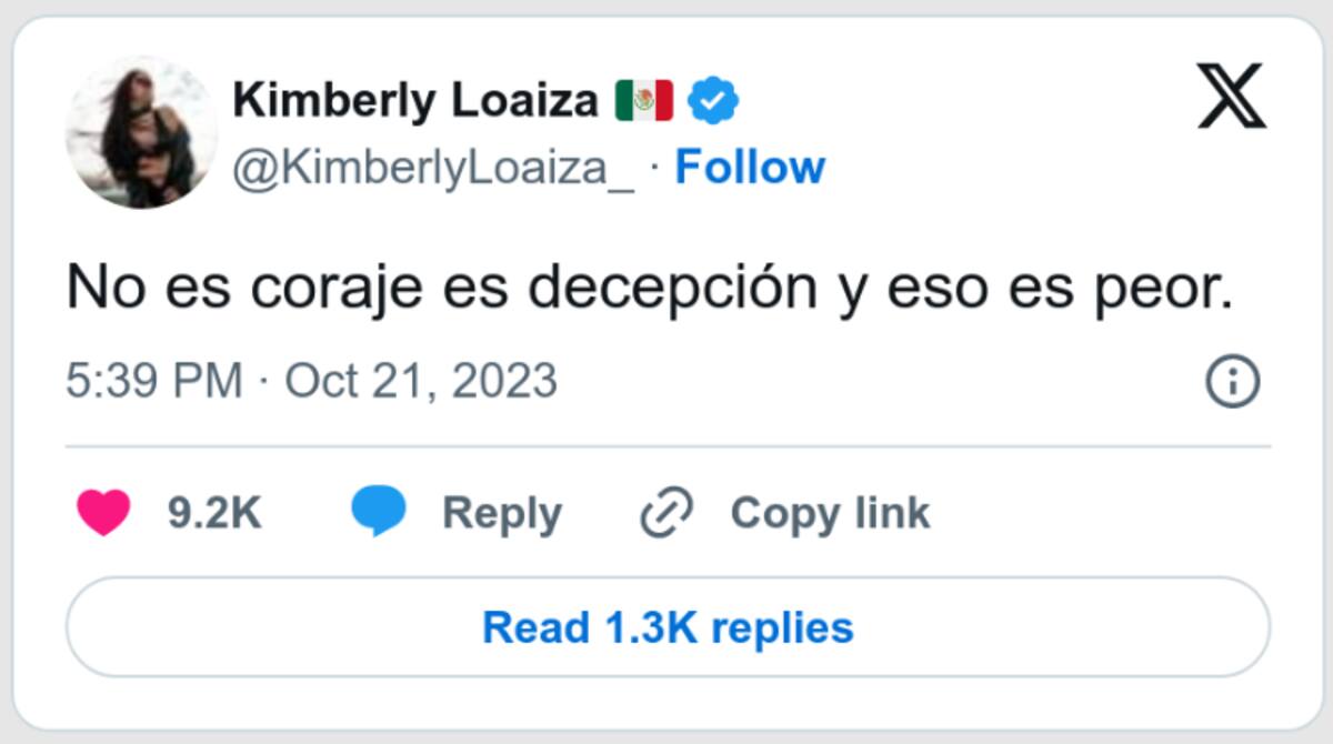 Loaiza utilizó su perfil en Twitter para expresar su decepción ante la situación, confirmando la veracidad de la supuesta infidelidad: