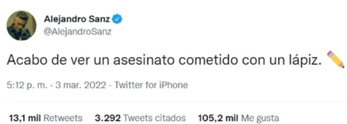 “Acabo de ver un asesinato cometido con un lápiz”, fue el mensaje con el que Sanz hizo alusión a que Residente "asesinó" a J Balvin. Su tuit generó diversas reacciones de los fanáticos.